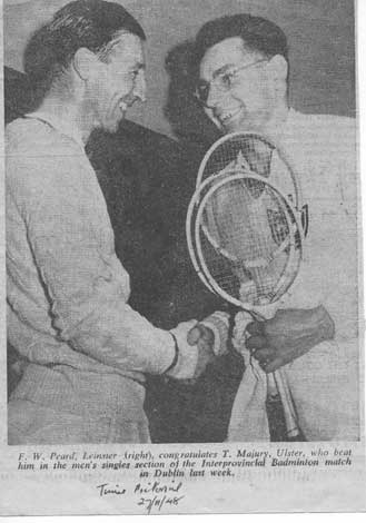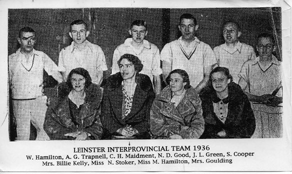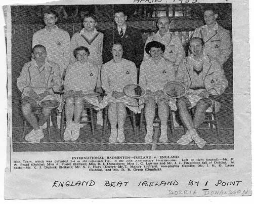 Badminton Hall, Whitehall Road, Dublin. First night of play, 20 April 1954.