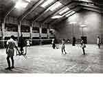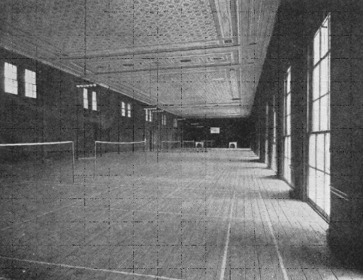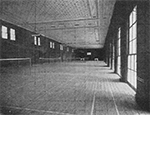 The Hall was built by Collen Brothers in 4 ½ months at a cost of £9,000. Note the open balcony, the unlined roof, and the Referee’s Office at the far end of the balcony.